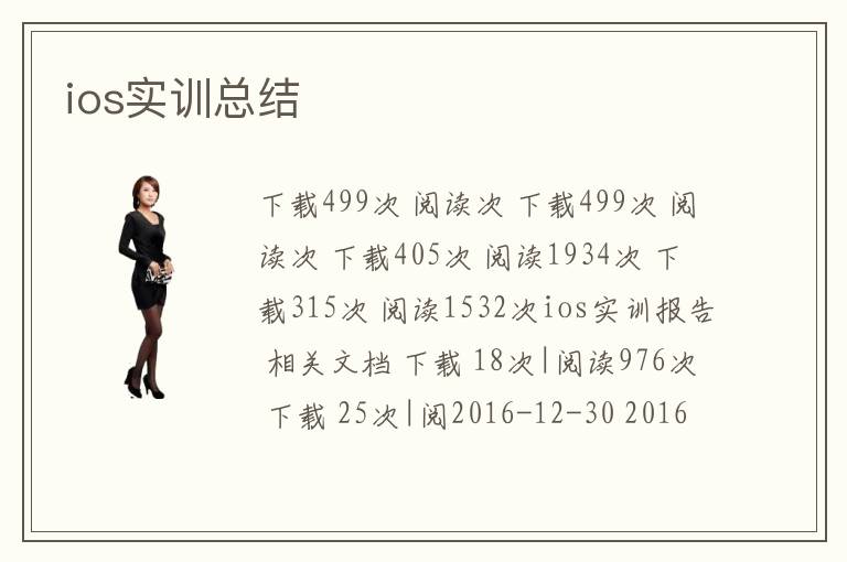 下載499次 閱讀次 下載499次 閱讀次 下載405次 閱讀1934次 下載315次 閱讀1532次ios實(shí)訓(xùn)報(bào)告 相關(guān)文檔 下載 18次|閱讀976次 下載 25次|閱