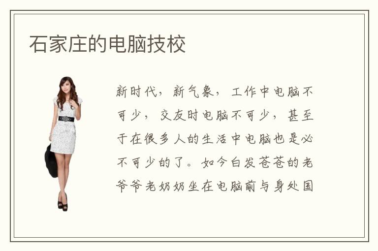 新時代,新氣象,工作中電腦不可少,交友時電腦不可少,甚至于在很多人的生活中電腦也是必不可少的了。如今白發(fā)蒼蒼的老爺爺老奶奶坐在電腦前與身處國外的兒女視頻已不是驚人之事,博士學(xué)位的高學(xué)歷畢業(yè)生不會使用電腦也是常事,想要學(xué)習(xí)更多的電腦技能,去對著諾大石家莊中的幾十家電腦技校無從下手。不用擔心,這里為你詳細的介紹了石家莊的電腦技校有哪些,它們的優(yōu)勢之處在哪里,從它們之中選擇一所適合你自己的學(xué)校吧。
