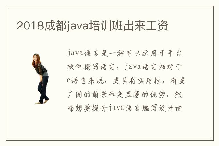 java語言是一種可以運(yùn)用于平臺軟件撰寫語言,java語言相對于c語言來說,更具有實(shí)用性,有更廣闊的前景和更顯著的優(yōu)勢。然而想要提升java語言編寫設(shè)計(jì)的技能最有效的方法就是報(bào)名參加一個(gè)java培訓(xùn)班,而想要提升java編寫設(shè)計(jì)的技能也就是為了今后能找到一個(gè)更好的工作崗位。那么,2018成都java培訓(xùn)班出來工資高嗎?2018成都java培訓(xùn)班出來工資多少呢?