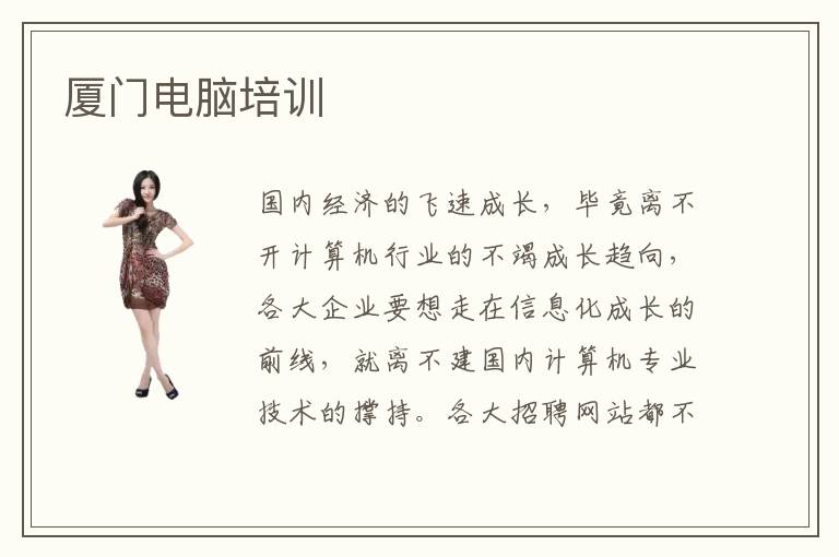 國(guó)內(nèi)經(jīng)濟(jì)的飛速成長(zhǎng),畢竟離不開計(jì)算機(jī)行業(yè)的不竭成長(zhǎng)趨向,各大企業(yè)要想走在信息化成長(zhǎng)的前線,就離不建國(guó)內(nèi)計(jì)算機(jī)專業(yè)技術(shù)的撐持。各大招聘網(wǎng)站都不好看出,各行各業(yè)關(guān)于計(jì)算機(jī)專業(yè)技術(shù)型人材的需求量很大,特別是國(guó)內(nèi)的計(jì)算機(jī)互聯(lián)網(wǎng)企業(yè)。但是此刻良多學(xué)習(xí)計(jì)算機(jī)專業(yè)的人卻很難對(duì)峙學(xué)下去,這是為什么呢?首要便是沒有把握學(xué)習(xí)it技術(shù)的技巧,那末廈門計(jì)算機(jī)培訓(xùn)計(jì)算機(jī)培訓(xùn)機(jī)構(gòu)哪家好呢?廈門計(jì)算機(jī)培訓(xùn)推薦電腦學(xué)校