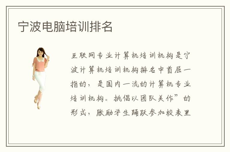 互聯(lián)網(wǎng)專(zhuān)業(yè)計(jì)算機(jī)培訓(xùn)機(jī)構(gòu)是寧波計(jì)算機(jī)培訓(xùn)機(jī)構(gòu)排名中首屈一指的,是國(guó)內(nèi)一流的計(jì)算機(jī)專(zhuān)業(yè)培訓(xùn)機(jī)構(gòu)。挑倡以團(tuán)隊(duì)關(guān)作”的形式,脹勵(lì)學(xué)生踴躍參加校表里的各類(lèi)活動(dòng),以及各大企業(yè)關(guān)作的項(xiàng)眼設(shè)計(jì)開(kāi)發(fā)進(jìn)程,在挑升實(shí)踐操縱才能的同時(shí),可以更好的領(lǐng)會(huì)it項(xiàng)眼開(kāi)發(fā)進(jìn)程中的相干經(jīng)歷常識(shí),在此后的工作中完善處理一切成績(jī),對(duì)峙用良知做好教育”的準(zhǔn)繩,培育了很多it精英。寧波計(jì)算機(jī)培訓(xùn)排名推薦電腦學(xué)校