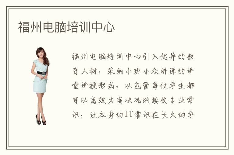 福州電腦培訓(xùn)中心引入優(yōu)異的教育人材,采納小班小眾講課的講堂講授形式,以包管每位學(xué)生都可以高效力高狀況地接收專業(yè)常識,讓本身的IT常識在長久的學(xué)習(xí)周期里獲得一個質(zhì)的奔騰。福州電腦培訓(xùn)電腦培訓(xùn)機構(gòu)在我們學(xué)習(xí)計算機的時辰能夠給我們相干的幫助,值得我們的相信。福州電腦培訓(xùn)講授資本多未幾?福州電腦計算機培訓(xùn)學(xué)校聘請專業(yè)西席,獲得企業(yè)的項眼撐持,教育資本豐碩。福州電腦培訓(xùn)中心推薦電腦學(xué)校
