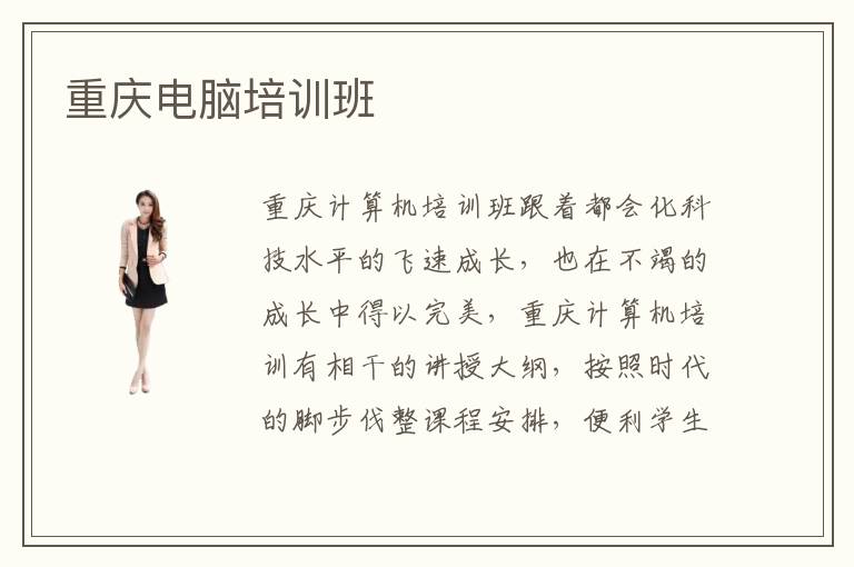 重慶計算機培訓計算機培訓班跟著都會化科技水平的飛速成長,也在不竭的成長中得以完美,重慶計算機培訓有相干的講授大綱,按照時代的腳步伐整課程安排,便利學生能夠實時學習到計算機的最新相干常識。重慶計算機培訓專業(yè)化強嗎?重慶計算機培訓機構引入先輩的培訓方式,植入先輩的培訓理念,議決師生的相同,實時加以教導。重慶計算機培訓哪家好?哪家性價比高?重慶計算機培訓班推薦電腦學校