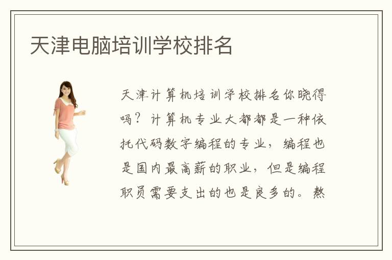 天津計算機(jī)培訓(xùn)計算機(jī)培訓(xùn)學(xué)校排名你曉得嗎?計算機(jī)專業(yè)大都都是一種依托代碼數(shù)字編程的專業(yè),編程也是國內(nèi)最高薪的職業(yè),但是編程職員需要支出的也是良多的。熬夜關(guān)于程序員們來講長短常遍及的情況,一旦呈現(xiàn)毛病,程序員們需要在大堆的字母中找犯錯誤的閉鍵點,這個工程量關(guān)于程序員們還是很大的。是以有踏實的編程基礎(chǔ),在碰到各類成績的情況下能力奇妙的處理。天津計算機(jī)培訓(xùn)學(xué)校排名推薦電腦學(xué)校