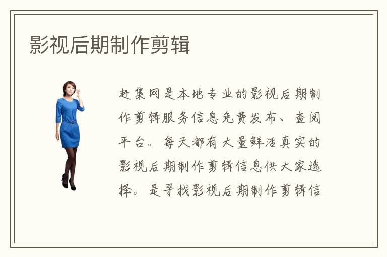 趕集網(wǎng)是本地專業(yè)的影視后期制作剪輯服務(wù)信息免費發(fā)布、查閱平臺。每天都有大量鮮活真實的影視后期制作剪輯信息供大家選擇。是尋找影視后期制作剪輯信息的最佳平臺。