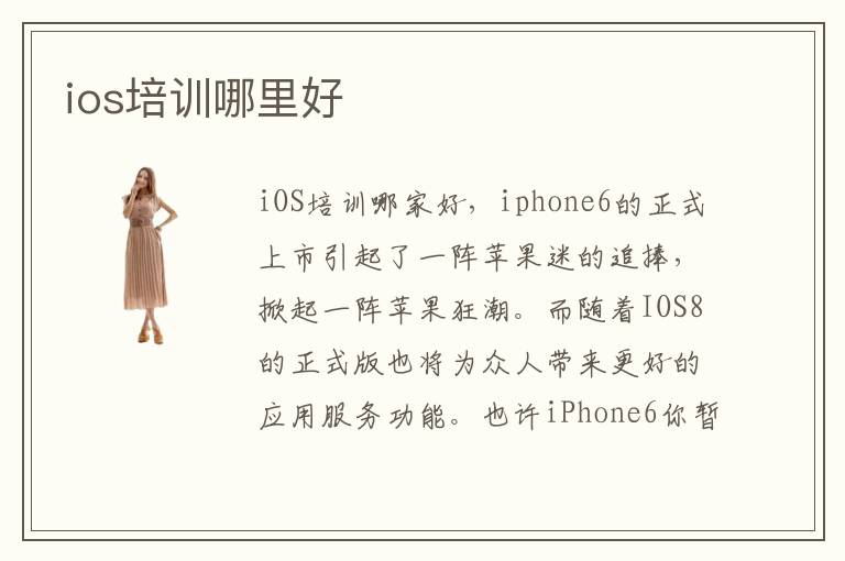 iOS培訓(xùn)哪家好,iphone6的正式上市引起了一陣蘋果迷的追捧,掀起一陣蘋果狂潮。而隨著IOS8的正式版也將為眾人帶來更好的應(yīng)用服務(wù)功能。也許iPhone6你暫時無法搶到,但是