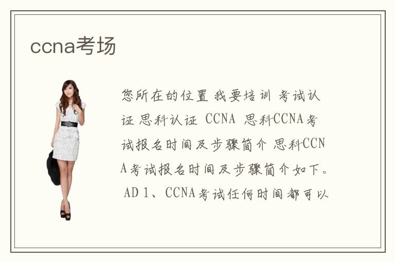 您所在的位置 我要培訓(xùn) >考試認(rèn)證 >思科認(rèn)證 > CCNA > 思科CCNA考試報(bào)名時(shí)間及步驟簡(jiǎn)介 思科CCNA考試報(bào)名時(shí)間及步驟簡(jiǎn)介如下。 AD 1、CCNA考試任何時(shí)間都可以報(bào)名