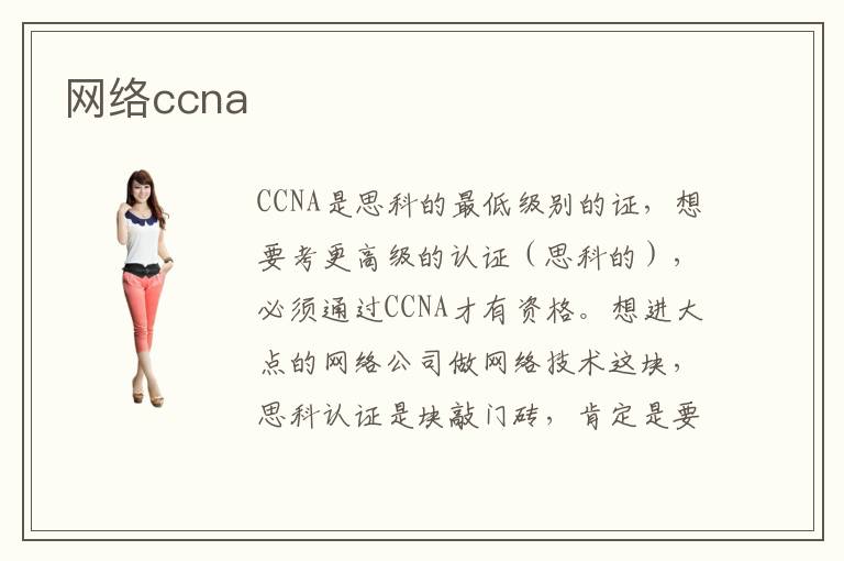 CCNA是思科的最低級(jí)別的證,想要考更高級(jí)的認(rèn)證(思科的),必須通過CCNA才有資格。想進(jìn)大點(diǎn)的網(wǎng)絡(luò)公司做網(wǎng)絡(luò)技術(shù)這塊,思科認(rèn)證是塊敲門磚,肯定是要考的。 對(duì)于一個(gè)