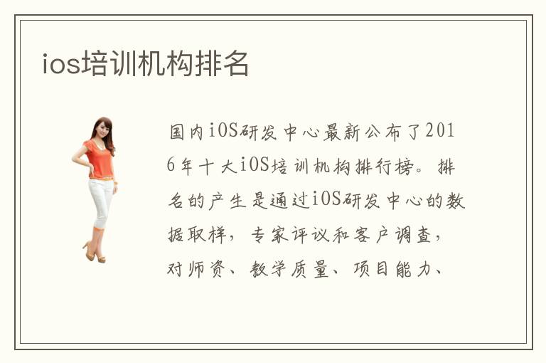 國內iOS研發(fā)中心最新公布了2016年十大iOS培訓機構排行榜。排名的產(chǎn)生是通過iOS研發(fā)中心的數(shù)據(jù)取樣,專家評議和客戶調查,對師資、教學質量、項目能力、學員滿意度等十