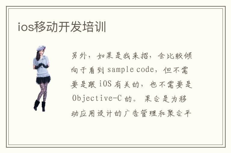 另外,如果是我來招,會(huì)比較傾向于看到 sample code,但不需要是跟 iOS 有關(guān)的,也不需要是 Objective-C 的。 果合是為移動(dòng)應(yīng)用設(shè)計(jì)的廣告管理和聚合平臺(tái)。我們幫助 app 開發(fā)
