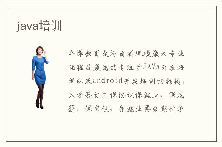 豐澤教育是河南省規(guī)模最大專業(yè)化程度最高的專注于JAVA開發(fā)培訓(xùn)以及android開發(fā)培訓(xùn)的機構(gòu),入學簽訂三保協(xié)議保就業(yè)、保底薪、保崗位,先就業(yè)再分期付學費!