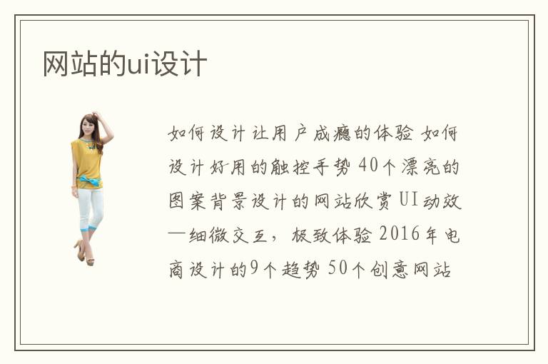 如何設(shè)計讓用戶成癮的體驗 如何設(shè)計好用的觸控手勢 40個漂亮的圖案背景設(shè)計的網(wǎng)站欣賞 UI動效—細微交互,極致體驗 2016年電商設(shè)計的9個趨勢 50個創(chuàng)意網(wǎng)站導航設(shè)計 12個國