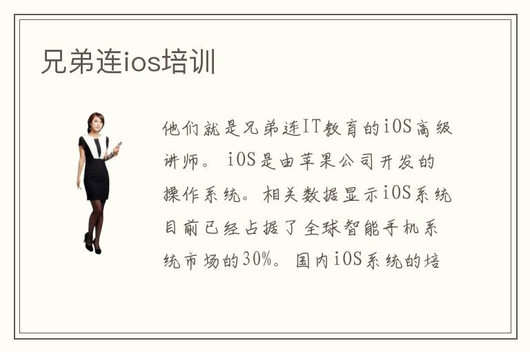 他們就是兄弟連IT教育的iOS高級(jí)講師。 iOS是由蘋果公司開(kāi)發(fā)的操作系統(tǒng)。相關(guān)數(shù)據(jù)顯示iOS系統(tǒng)目前已經(jīng)占據(jù)了全球智能手機(jī)系統(tǒng)市場(chǎng)的30%。國(guó)內(nèi)iOS系統(tǒng)的培訓(xùn)機(jī)構(gòu)很多,