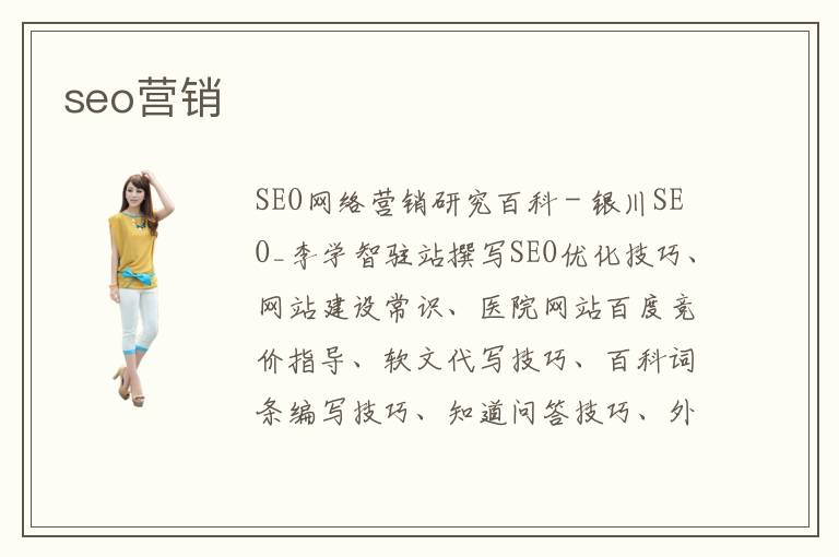 SEO網(wǎng)絡(luò)營(yíng)銷研究百科 - 銀川SEO_李學(xué)智駐站撰寫SEO優(yōu)化技巧、網(wǎng)站建設(shè)常識(shí)、醫(yī)院網(wǎng)站百度競(jìng)價(jià)指導(dǎo)、軟文代寫技巧、百科詞條編寫技巧、知道問(wèn)答技巧、外鏈建設(shè)技巧等教