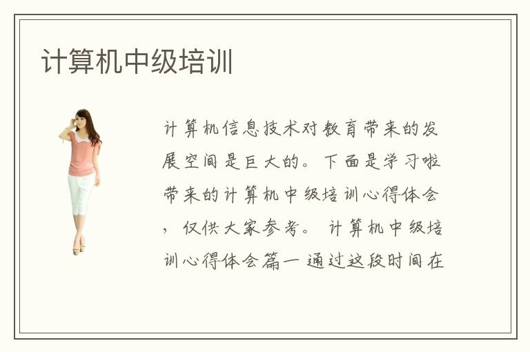計(jì)算機(jī)信息技術(shù)對教育帶來的發(fā)展空間是巨大的。下面是學(xué)習(xí)啦帶來的計(jì)算機(jī)中級培訓(xùn)心得體會,僅供大家參考。 計(jì)算機(jī)中級培訓(xùn)心得體會篇一 通過這段時間在網(wǎng)上學(xué)習(xí)計(jì)算機(jī)