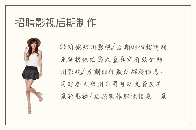 58同城鄭州影視/后期制作招聘網(wǎng)免費(fèi)提供給您大量真實(shí)有效的鄭州影視/后期制作最新招聘信息,同時(shí)各大鄭州公司可以免費(fèi)發(fā)布最新影視/后期制作職位信息。最好的鄭州影視/