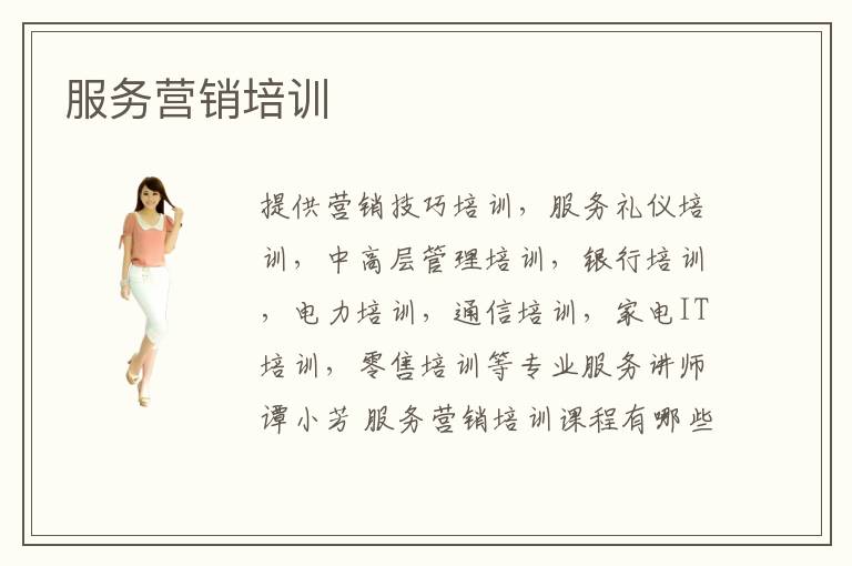 鍍金池/ 網(wǎng)絡(luò)營銷培訓(xùn)列表/ 服務(wù)營銷培訓(xùn)