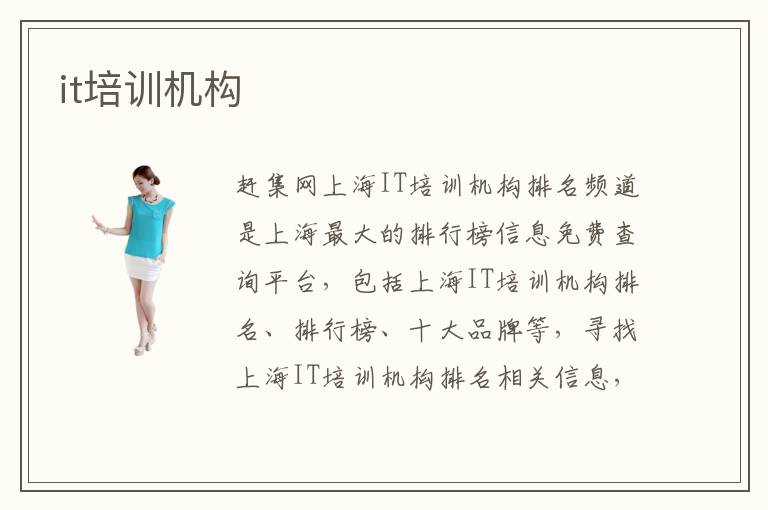 趕集網(wǎng)上海IT培訓(xùn)機(jī)構(gòu)排名頻道是上海最大的排行榜信息免費(fèi)查詢平臺,包括上海IT培訓(xùn)機(jī)構(gòu)排名、排行榜、十大品牌等,尋找上海IT培訓(xùn)機(jī)構(gòu)排名相關(guān)信息,請到上海趕集網(wǎng)。