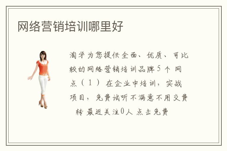 淘學為您提供全面、優(yōu)質(zhì)、可比較的網(wǎng)絡營銷培訓品牌 5 個 網(wǎng)點( 1 ) 在企業(yè)中培訓,實戰(zhàn)項目,免費試聽不滿意不用交費 轉(zhuǎn) 最近關注0人 點擊免費