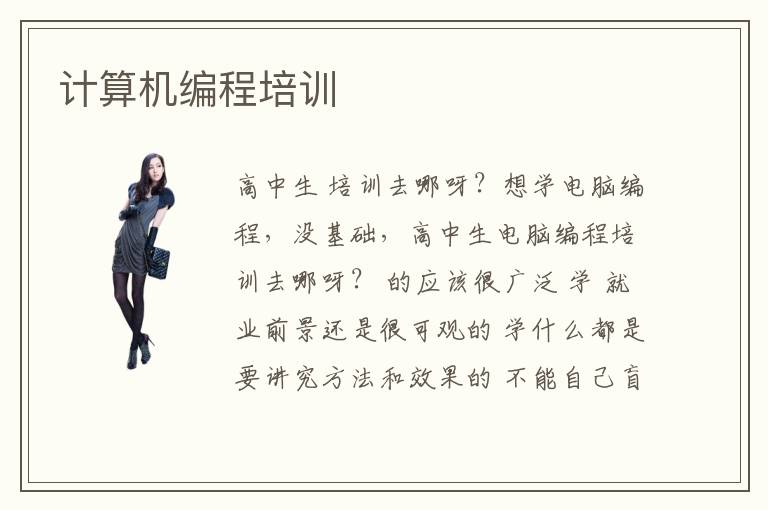 高中生 培訓去哪呀?想學電腦編程,沒基礎,高中生電腦編程培訓去哪呀? 的應該很廣泛 學 就業(yè)前景還是很可觀的 學什么都是要講究方法和效果的 不能自己盲目的去學習 多練習