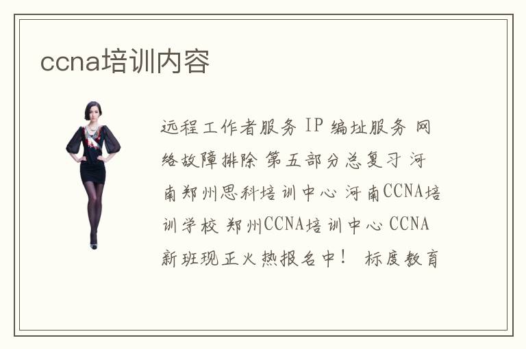 類別 認(rèn)證培訓(xùn) 價格 面議 聯(lián)系人 董老師 聯(lián)系 CCNA培訓(xùn)目標(biāo) 學(xué)完此課程 (PPP、HDLC、RS-232)。CCNA認(rèn)證的組成部分 CCNA內(nèi)容涉及三大方面 1.局域