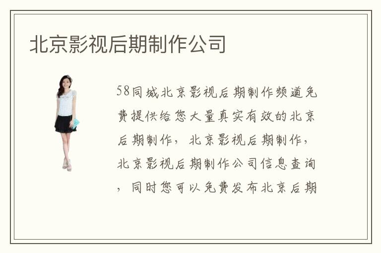58同城北京影視后期制作頻道免費(fèi)提供給您大量真實(shí)有效的北京后期制作,北京影視后期制作,北京影視后期制作公司信息查詢,同時您可以免費(fèi)發(fā)布北京后期制作,北京影視后期