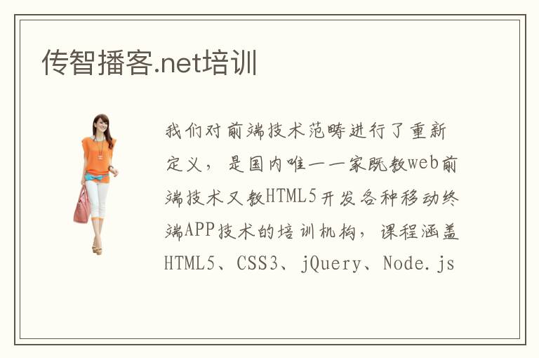 我們對前端技術(shù)范疇進行了重新定義,是國內(nèi)唯一一家既教web前端技術(shù)又教HTML5開發(fā)各種移動終端APP技術(shù)的培訓機構(gòu),課程涵蓋HTML5、CSS3、jQuery、Node.js、Canvas