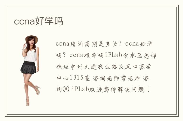 ccna培訓(xùn)周期是多長(zhǎng)?ccna好學(xué)嗎?ccna難學(xué)嗎iPLab金水區(qū)總部地址中州大道農(nóng)業(yè)路交叉口蘇荷中心1315室 咨詢(xún)老師常老師 咨詢(xún)QQ iPLab歡迎您