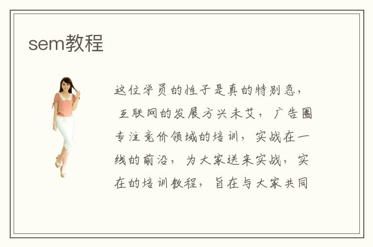這位學(xué)員的性子是真的特別急, 互聯(lián)網(wǎng)的發(fā)展方興未艾,廣告圈專注競價(jià)領(lǐng)域的培訓(xùn),實(shí)戰(zhàn)在一線的前沿,為大家送來實(shí)戰(zhàn),實(shí)在的培訓(xùn)教程,旨在與大家共同進(jìn)步!2016《廣告
