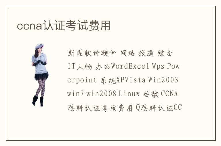 新聞軟件硬件 網(wǎng)絡(luò) 報(bào)道 綜合 IT人物 辦公WordExcel Wps Powerpoint 系統(tǒng)XPVista Win2003 win7 win2008 Linux 谷歌 CCNA思科認(rèn)證考試費(fèi)用 Q思科認(rèn)證CCNA考試費(fèi)用 A思