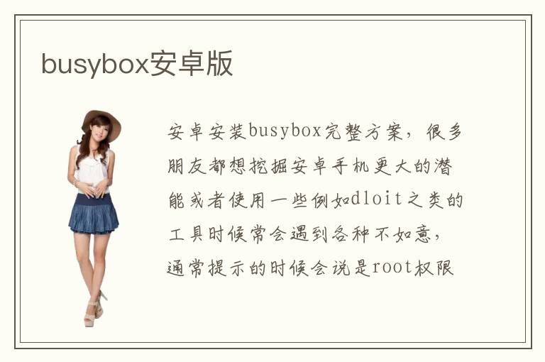 安卓安裝busybox完整方案,很多朋友都想挖掘安卓手機(jī)更大的潛能或者使用一些例如dloit之類的工具時(shí)候常會(huì)遇到各種不如意,通常提示的時(shí)候會(huì)說是root權(quán)限的問題或者uyox版本