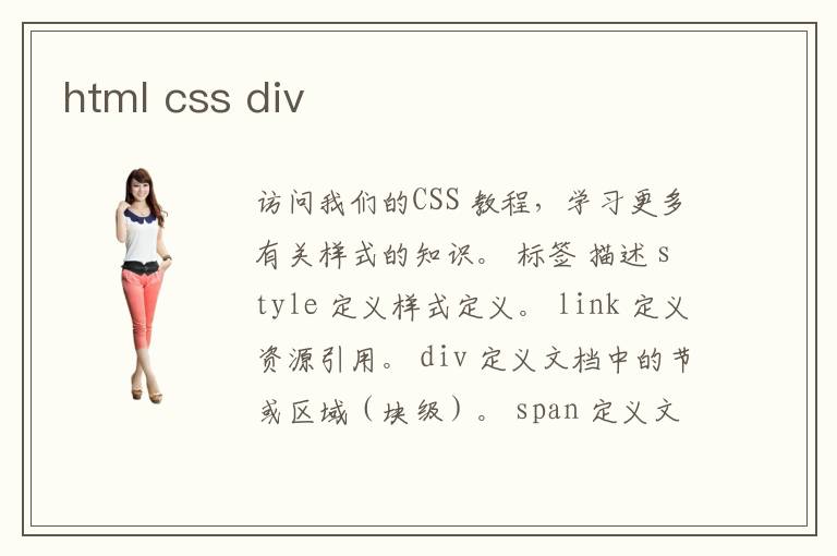 訪(fǎng)問(wèn)我們的CSS 教程,學(xué)習(xí)更多有關(guān)樣式的知識(shí)。 標(biāo)簽 描述 <style> 定義樣式定義。 <link> 定義資源引用。 <div> 定義文檔中的節(jié)或區(qū)域(塊級(jí))。 <span> 定義文檔中的行內(nèi)的