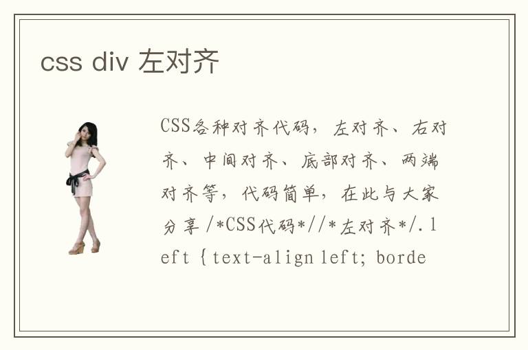 CSS各種對齊代碼,左對齊、右對齊、中間對齊、底部對齊、兩端對齊等,代碼簡單,在此與大家分享 /*CSS代碼*//*左對齊*/.left { text-align left; border 1px dotted black; width
