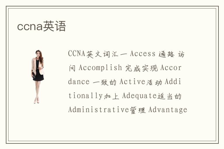 CCNA英文詞匯一 Access 通路 訪問 Accomplish 完成實現(xiàn) Accordance 一致的 Active活動 Additionally加上 Adequate適當?shù)?Administrative管理 Advantage有優(yōu)勢利益 Aggregation