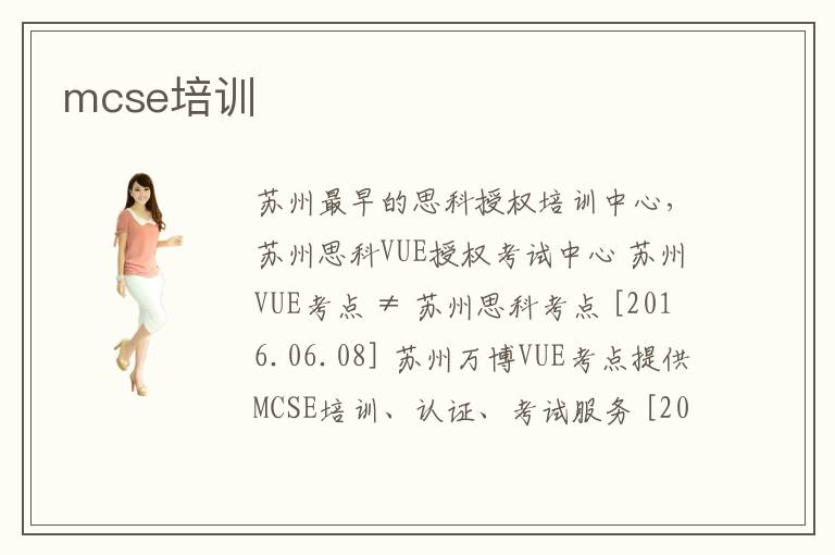 蘇州最早的思科授權(quán)培訓(xùn)中心,蘇州思科VUE授權(quán)考試中心 蘇州VUE考點(diǎn) ≠ 蘇州思科考點(diǎn) [2016.06.08] 蘇州萬(wàn)博VUE考點(diǎn)提供MCSE培訓(xùn)、認(rèn)證、考試服務(wù) [2016.05.12] 約不上考試