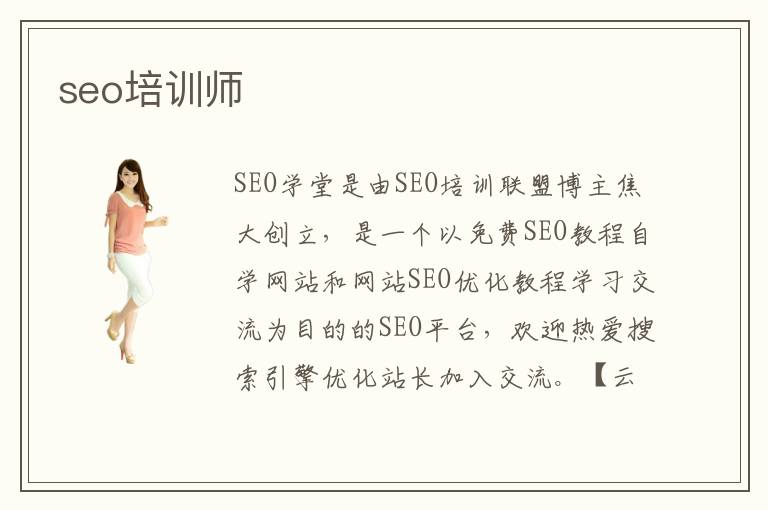 [雅然最新招聘信息]誠(chéng)聘SEO培訓(xùn)師若干人,工作地點(diǎn)位于北京朝陽(yáng),公司規(guī)模50-99人,薪資待遇-元,工作經(jīng)驗(yàn)不限,學(xué)歷要求不限,崗位職責(zé)1、制定公司培訓(xùn)工