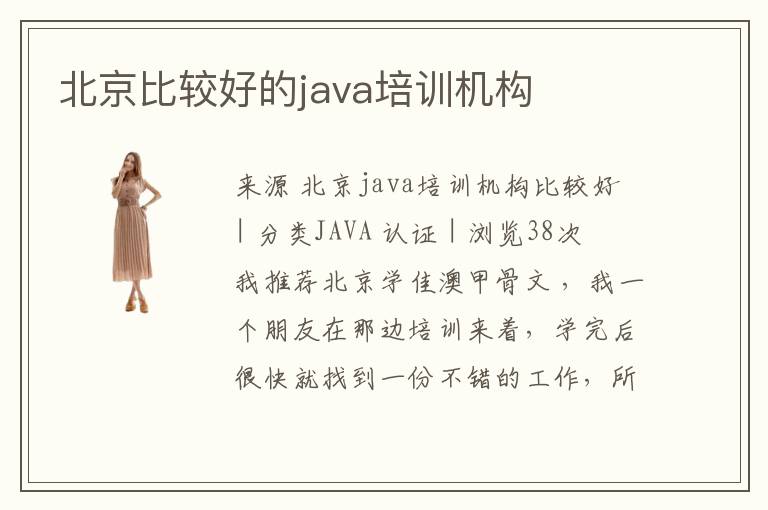 來源 北京java培訓(xùn)機構(gòu)比較好 | 分類JAVA 認(rèn)證 | 瀏覽38次 我推薦北京學(xué)佳澳甲骨文 ,我一個朋友在那邊培訓(xùn)來著,學(xué)完后很快就找到一份不錯的工作,所以個人認(rèn)為那里應(yīng)該