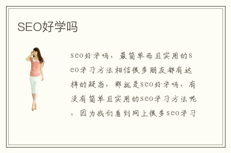 seo好學嗎,最簡單而且實用的seo學習方法相信很多朋友都有這樣的疑惑,那就是seo好學嗎,有沒有簡單且實用的seo學習方法呢,因為我們看到網(wǎng)上很多seo學習的教程里講得