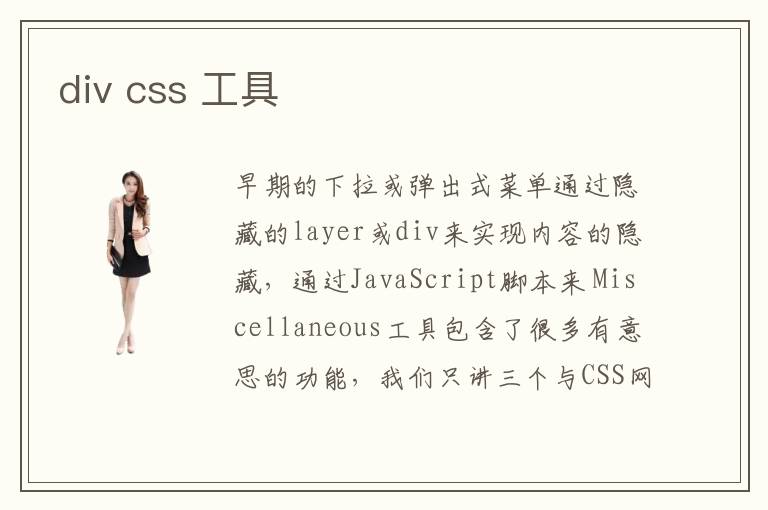 早期的下拉或彈出式菜單通過隱藏的layer或div來實(shí)現(xiàn)內(nèi)容的隱藏,通過JavaScript腳本來 Miscellaneous工具包含了很多有意思的功能,我們只講三個(gè)與CSS網(wǎng)頁布局開發(fā)有關(guān)系
