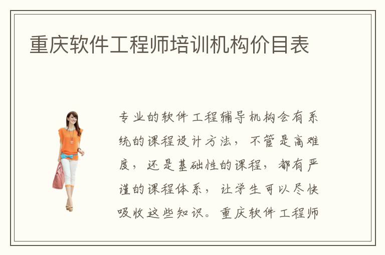 專業(yè)的軟件工程輔導(dǎo)機構(gòu)會有系統(tǒng)的課程設(shè)計方法,不管是高難度,還是基礎(chǔ)性的課程,都有嚴謹?shù)恼n程體系,讓學(xué)生可以盡快吸收這些知識。重慶軟件工程師培訓(xùn)機構(gòu)價目表可能是準備4000~9000,,教育的資源有很大的變化,課程的內(nèi)容不同,所以教學(xué)的成績以及培訓(xùn)的費用會有十分大的差異,所以要先有對比,然后再作出決定。軟件工程師培訓(xùn)課程一般是有不同的學(xué)習(xí)難度,也有基礎(chǔ)類的的課程和高端的課程,每一個學(xué)員都有不同的基礎(chǔ)背景,因此在選擇課程內(nèi)容之前,就應(yīng)該要結(jié)合這些基礎(chǔ)來選擇合適的輔導(dǎo)班和課程。另外在考慮輔導(dǎo)班的過程中,軟件工程師培訓(xùn)機構(gòu)能力也是很重要的因素。比如有些輔導(dǎo)班可能并沒有很好的技術(shù)水平,而且課程內(nèi)容總是比較匱乏,學(xué)生沒有很好的學(xué)習(xí)或者是學(xué)習(xí)成果會受到干擾。