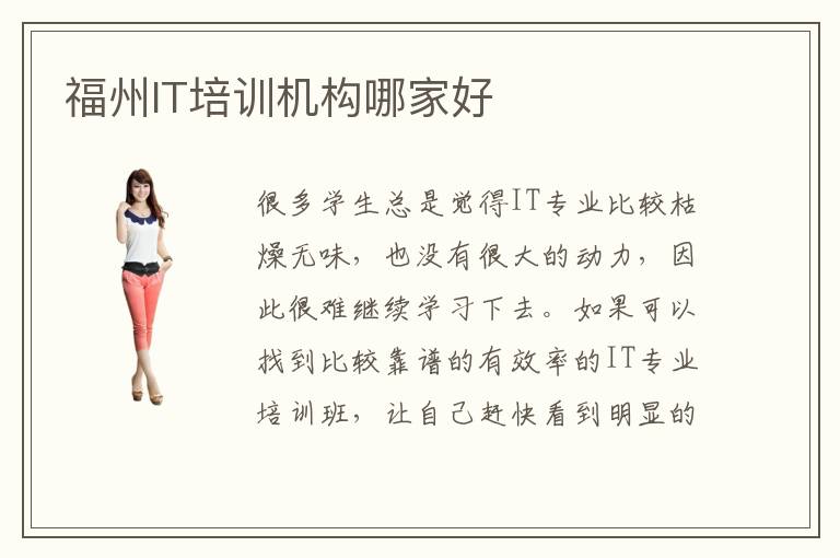 很多學生總是覺得IT專業(yè)比較枯燥無味,也沒有很大的動力,因此很難繼續(xù)學習下去。如果可以找到比較靠譜的有效率的IT專業(yè)培訓班,讓自己趕快看到明顯的成果,那么也許就會有很大的改觀。大家可以重點關注福州IT培訓機構哪家好,選擇優(yōu)質的IT專業(yè)課程,那么以后就會有較強的技能優(yōu)勢和競爭優(yōu)勢。IT培訓機構有沒有就業(yè)輔導班,在IT專業(yè)知識的過程中,部分學生總是擔心就業(yè)能力不強,那么以后學習就沒有太大的價值。其實還是可以報名很多專業(yè)的就業(yè)輔導班,因為老師有很多就業(yè)的基礎和技能,學生掌握之后也許就不會太擔心就業(yè)價值的問題。IT培訓機構有必要嗎,有一些學生可能在IT專業(yè)方面沒有很好的應用技術和成績,,但是透過一系列的輔導之后,也許就會有更好的學習方案。