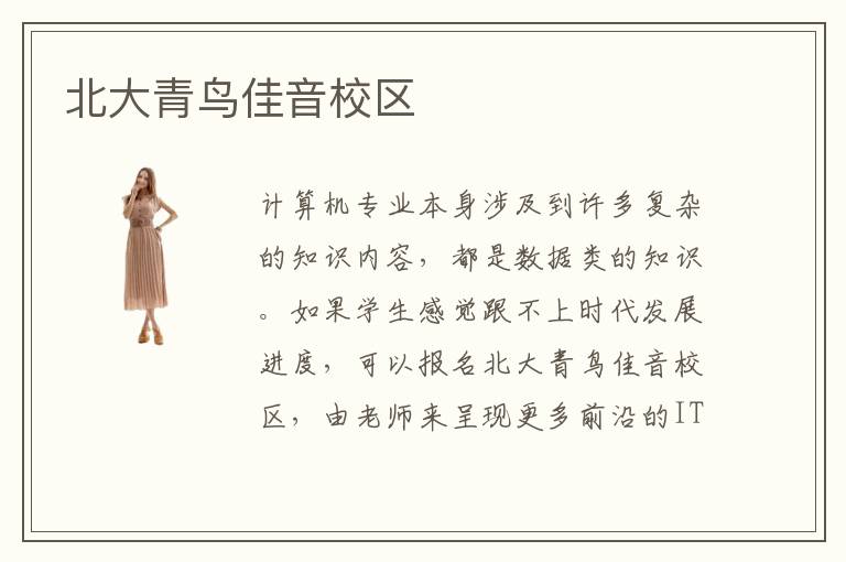 計算機專業(yè)本身涉及到許多復雜的知識內(nèi)容,都是數(shù)據(jù)類的知識。如果學生感覺跟不上時代發(fā)展進度,可以報名北大青鳥佳音校區(qū),由老師來呈現(xiàn)更多前沿的IT專業(yè)知識內(nèi)容,幫助學員找到未來學習方向。北大青鳥學習氛圍如何,很多學員報名北大青鳥就是因為有明確的學習目標,也希望短時間內(nèi)改善自己的成績,因此在培訓的過程中往往會非常積極。在這樣的氛圍下,往往學生都會相互協(xié)助共同探討,形成優(yōu)質(zhì)的學習氛圍,讓大家的成績得到更快的提升。北大青鳥佳音校區(qū)學習有沒有壓力,其實在知名的學校學習課程當然會有一定的壓力,不過這些壓力可以轉化為動力,而且大多數(shù)學生需要這樣的壓力,以后有更強的學習欲望,挑戰(zhàn)更多高難度的知識點,競爭水平將會突飛猛進,贏得更大的舞臺。