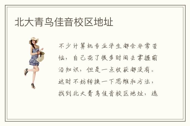 不少計算機專業(yè)學生都會非??鄲溃约夯撕芏鄷r間去掌握前沿知識,但是一點收獲都沒有。這時不妨轉(zhuǎn)換一下思維和方法,找到北大青鳥佳音校區(qū)地址,選擇優(yōu)質(zhì)的課程教學方案,讓自己的知識結(jié)構(gòu)變得更加完善。北大青鳥佳音校區(qū)水平是非常優(yōu)越的,可能有些學生才剛開始接觸課程,所以學習能力不是很強,但是有北大青鳥專業(yè)老師的指導,往往就不用擔心進步速度很慢的情況。北大青鳥口碑如何,北大青鳥教育機構(gòu)的口碑一直都是相當優(yōu)越的,大量學員慕名而來,報名北大青鳥的培訓課程,期待有更廣闊的發(fā)展舞臺,競爭能力變得更強。其實之所以有如此讓人期待的優(yōu)勢,就是因為北大青鳥一直都嚴格設(shè)計培訓的課程,要求老師有超高水平,在工作崗位上有足夠強的能力,也有豐富的教學經(jīng)驗。