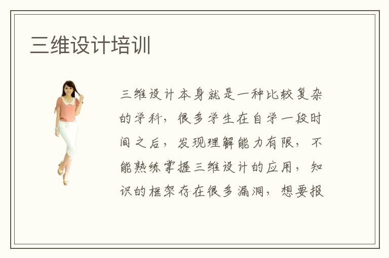 三維設(shè)計(jì)本身就是一種比較復(fù)雜的學(xué)科,很多學(xué)生在自學(xué)一段時(shí)間之后,發(fā)現(xiàn)理解能力有限,不能熟練掌握三維設(shè)計(jì)的應(yīng)用,知識(shí)的框架存在很多漏洞,想要報(bào)名參與三維設(shè)計(jì)培訓(xùn)的課程。三維設(shè)計(jì)教學(xué)方法比較豐富,比如遠(yuǎn)程輔導(dǎo)、1對(duì)1輔導(dǎo)、小班輔導(dǎo)等等。這些輔導(dǎo)方案可以結(jié)合學(xué)生的需要,采用個(gè)性化的補(bǔ)習(xí)措施,讓大家得三維設(shè)計(jì)能力更強(qiáng),從而體現(xiàn)出三維設(shè)計(jì)培訓(xùn)效果。當(dāng)然,學(xué)生自己要認(rèn)真去對(duì)比,關(guān)注不同學(xué)習(xí)方法,了解各方面的學(xué)習(xí)任務(wù)。除了理論知識(shí)之外,還應(yīng)多關(guān)注應(yīng)用知識(shí)領(lǐng)域的內(nèi)容,如果只有理論的積累,缺乏良好的應(yīng)用,培訓(xùn)效果還能得到體現(xiàn)。另外,在學(xué)習(xí)中也應(yīng)該有獨(dú)立的思考,自己去挖掘更多深層次的知識(shí)領(lǐng)域,不要依賴?yán)蠋熞约叭S設(shè)計(jì)補(bǔ)習(xí)班。