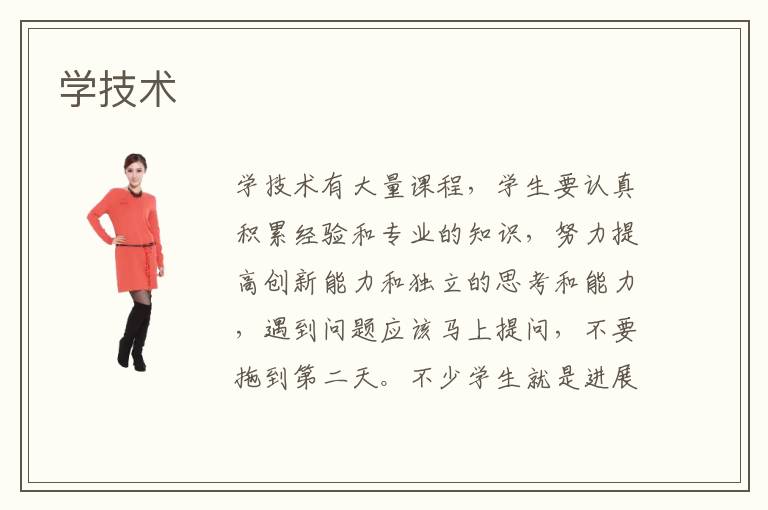 學(xué)技術(shù)有大量課程,學(xué)生要認(rèn)真積累經(jīng)驗(yàn)和專業(yè)的知識(shí),努力提高創(chuàng)新能力和獨(dú)立的思考和能力,遇到問題應(yīng)該馬上提問,不要拖到第二天。不少學(xué)生就是進(jìn)展非常慢,缺乏屬于自己的知識(shí)框架,容易出現(xiàn)學(xué)習(xí)的瓶頸。學(xué)技術(shù)是不是很無聊,技術(shù)學(xué)習(xí)當(dāng)然會(huì)存在部分無聊的環(huán)節(jié)和領(lǐng)域,不過老師利用寓教于樂等等教學(xué)方式,讓大家趕快掌握前沿技術(shù),也能與時(shí)俱進(jìn),不斷更新自己的知識(shí)庫。技術(shù)輔導(dǎo)班多人嗎,技術(shù)培訓(xùn)班有大量的學(xué)生,因?yàn)樵S多學(xué)生都希望改善應(yīng)用的成績(jī),體現(xiàn)出學(xué)習(xí)優(yōu)勢(shì),把握好發(fā)展的方向,展示出自己的價(jià)值。其實(shí)目前的教學(xué)機(jī)構(gòu)越來越多,所以學(xué)生在選擇時(shí)也十分苦惱,害怕不小心找到不靠譜的技術(shù)補(bǔ)習(xí)班,學(xué)習(xí)成績(jī)不能得到快速提高,反而會(huì)浪費(fèi)很多學(xué)習(xí)時(shí)間。
