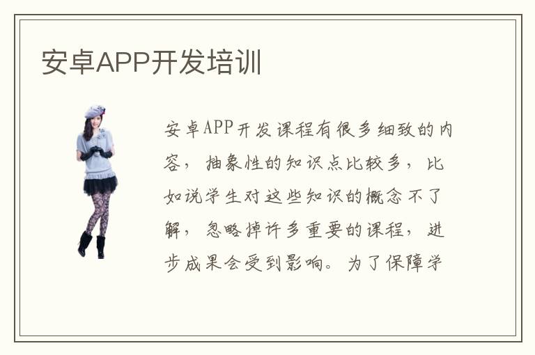 安卓APP開(kāi)發(fā)課程有很多細(xì)致的內(nèi)容,抽象性的知識(shí)點(diǎn)比較多,比如說(shuō)學(xué)生對(duì)這些知識(shí)的概念不了解,忽略掉許多重要的課程,進(jìn)步成果會(huì)受到影響。為了保障學(xué)習(xí)優(yōu)勢(shì)體現(xiàn)應(yīng)用的成果,學(xué)生可以選擇某些知名教學(xué)輔導(dǎo)班,挑選合適的安卓APP開(kāi)發(fā)培訓(xùn)課程,由老師來(lái)親自提供合適的補(bǔ)習(xí)方案,相信會(huì)有很大的進(jìn)步和改善。安卓APP開(kāi)發(fā)培訓(xùn)師資相當(dāng)優(yōu)越,許多學(xué)生對(duì)自身能力都缺乏信心,學(xué)習(xí)過(guò)程也是唯唯諾諾,沒(méi)有辦法正面應(yīng)對(duì)各種知識(shí)難題,進(jìn)步速度非常慢。而專業(yè)老師會(huì)及時(shí)幫助學(xué)生建立自信,掃除安卓APP開(kāi)發(fā)知識(shí)漏洞。安卓APP開(kāi)發(fā)培訓(xùn)效率如何,安卓APP開(kāi)發(fā)補(bǔ)習(xí)機(jī)構(gòu)的培訓(xùn)效率很高,因?yàn)槔蠋煏?huì)有比較嚴(yán)格的教學(xué)方式,為學(xué)生布置重要的作業(yè)任務(wù),讓學(xué)生可以快速提高軟件開(kāi)發(fā)的能力。