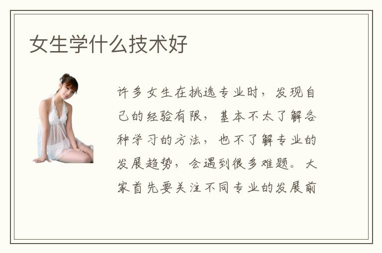 許多女生在挑選專業(yè)時,發(fā)現(xiàn)自己的經(jīng)驗有限,基本不太了解各種學(xué)習(xí)的方法,也不了解專業(yè)的發(fā)展趨勢,會遇到很多難題。大家首先要關(guān)注不同專業(yè)的發(fā)展前景以及就業(yè)優(yōu)勢、個人的興趣愛好等等,綜合進行考慮,不要隨便做決定,以免影響未來發(fā)展。女生學(xué)什么技術(shù)好,一方面要考慮專業(yè)的前景,另外一方面也要看看不同培訓(xùn)機構(gòu)的能力以及教學(xué)方法等等,如果培訓(xùn)機構(gòu)的實力比較糟糕,可能要延長學(xué)習(xí)的時間,大家要謹(jǐn)慎。技術(shù)補習(xí)班學(xué)習(xí)時間可能在一個月到三個月,但事實上學(xué)生自己選擇的課程不太一樣,輔導(dǎo)方式以及時間等等存在一點點差別。為了保障不錯的技術(shù)教學(xué)補習(xí)班能力,學(xué)生要努力珍惜學(xué)習(xí)的機會,了解一些重要的學(xué)習(xí)技巧和方式,爭取得到更多學(xué)習(xí)的資源。