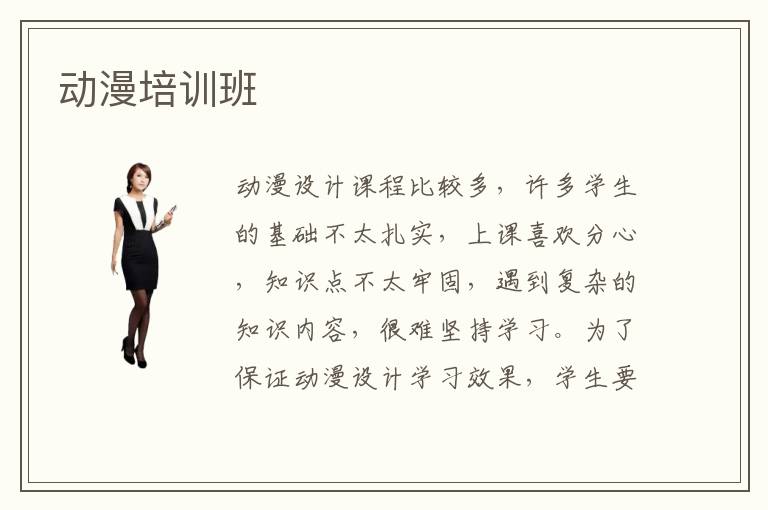 動漫設計課程比較多,許多學生的基礎不太扎實,上課喜歡分心,知識點不太牢固,遇到復雜的知識內(nèi)容,很難堅持學習。為了保證動漫設計學習效果,學生要調(diào)整一下思路,比如報名專業(yè)的動漫培訓班,由老師提供一些個性化的輔導方法,讓大家擁有更明確的目標以及更積極的學習動力,掃除各種未來可能遇到的難題。動漫培訓課程很多,多數(shù)都有不錯的學習質量,培訓班機構的學生要是能按時完成這些課程,相信都會有很好的動漫培訓班效果。動漫培訓班網(wǎng)上教學可以節(jié)約學生的時間,通過網(wǎng)上在線輔導課程的方式,不用受到時間與空間限制,通過電腦和手機即可教學。更重要的是,網(wǎng)上方式可以提供老師與同學互動的機會,大家要是有疑問,可以通過網(wǎng)絡的方式馬上向老師請教。
