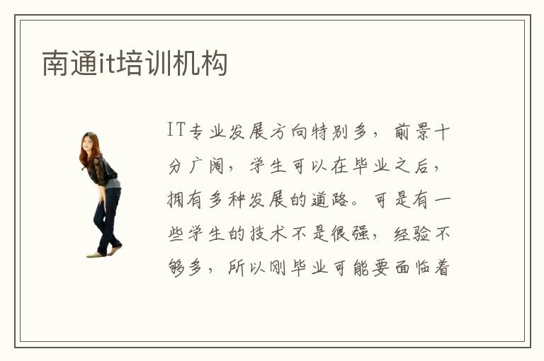 IT專業(yè)發(fā)展方向特別多,前景十分廣闊,學(xué)生可以在畢業(yè)之后,擁有多種發(fā)展的道路。可是有一些學(xué)生的技術(shù)不是很強(qiáng),經(jīng)驗(yàn)不夠多,所以剛畢業(yè)可能要面臨著失業(yè)的風(fēng)險(xiǎn)。為了在就業(yè)時(shí)擁有更多優(yōu)勢,找到自己滿意的工作類型,學(xué)生可關(guān)注南通it培訓(xùn)機(jī)構(gòu),了解更多前沿的IT技術(shù),從而把握時(shí)代的前沿和發(fā)展趨勢。it培訓(xùn)機(jī)構(gòu)小班教學(xué)有很強(qiáng)的針對性,每個學(xué)員的技術(shù)水平都不太一樣,而小班教學(xué)的方法可以針對不同學(xué)員基礎(chǔ),選擇合適的IT指導(dǎo)課程。it培訓(xùn)機(jī)構(gòu)有價(jià)值嗎,IT培訓(xùn)機(jī)構(gòu)當(dāng)然是非常有價(jià)值的,首先是通過寓教于樂的方式,讓大家了解更多有趣的知識,感受到IT專業(yè)學(xué)習(xí)的樂趣。另外,培訓(xùn)機(jī)構(gòu)還能提供優(yōu)越的教學(xué)設(shè)備,提升應(yīng)用課程的比例,幫助學(xué)生改善個人應(yīng)用水準(zhǔn),開拓學(xué)習(xí)的思維。