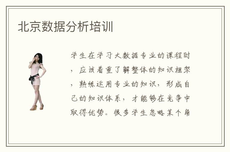 學(xué)生在學(xué)習(xí)大數(shù)據(jù)專業(yè)的課程時,應(yīng)該著重了解整體的知識框架,熟練運用專業(yè)的知識,形成自己的知識體系,才能夠在競爭中取得優(yōu)勢。很多學(xué)生忽略某個角度的學(xué)習(xí),經(jīng)常自以為是,沒有形成完善的知識結(jié)構(gòu),導(dǎo)致學(xué)習(xí)效率下降,成績也不夠突出,找工作四處碰壁。為了改善這些局勢,學(xué)生可以參與北京數(shù)據(jù)分析培訓(xùn)數(shù)據(jù)分析培訓(xùn)課程的訓(xùn)練。數(shù)據(jù)分析培訓(xùn)機構(gòu)綜合水準(zhǔn)比較高,部分學(xué)生擔(dān)心學(xué)習(xí)能力不強,狀態(tài)非常不好,時間非常有限,得到數(shù)據(jù)分析培訓(xùn)機構(gòu)的幫助后,學(xué)生都可以逐漸提高學(xué)習(xí)效率和能力,快速了解數(shù)據(jù)分析的應(yīng)用知識。數(shù)據(jù)分析培訓(xùn)攻略主要是在線輔導(dǎo)、一對一教學(xué)、上門輔導(dǎo)等等方式。這些輔導(dǎo)方法可以滿足多種學(xué)生的培訓(xùn)需要,要是覺得上門輔導(dǎo)很麻煩,可選擇在家里通過在線輔導(dǎo)的方法來完成課程。